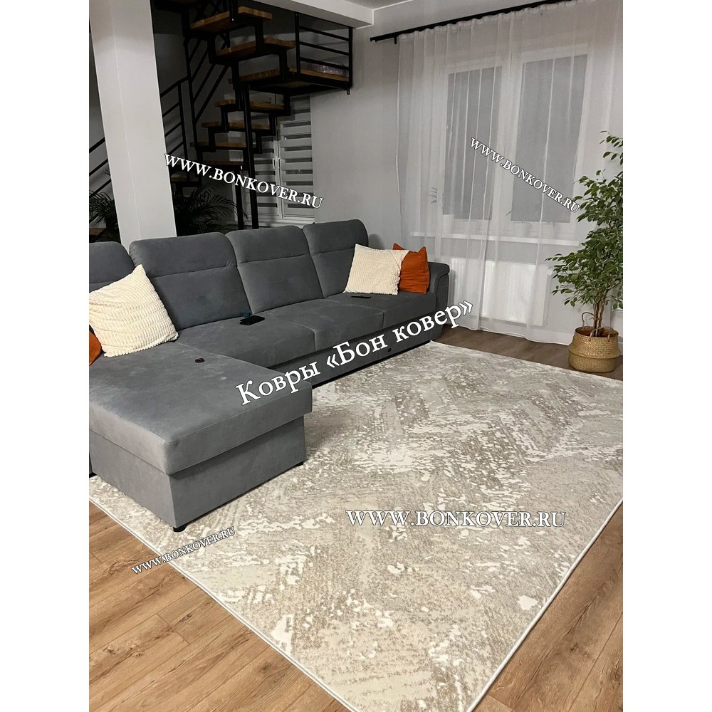 Изящный Белый с Серым Ковер Для Гостиной Арт 29951 наполняет интерьер вашего дома теплом и уютом, гармонично сочетает в себе изящество и красоту. Он соткан из высококачественного сырья, комфортный и долговечный.